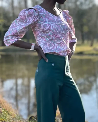Le patron de couture Lydie est une blouse facile à coudre, pensée pour les couturières débutantes.